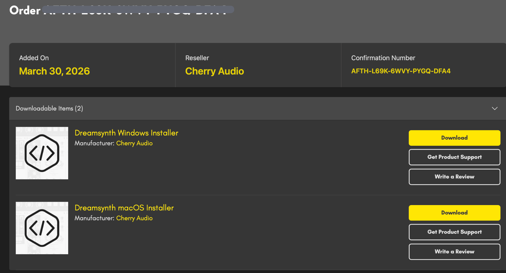 3. Once completed, visit https://store.cherryaudio.com/my/settings/library to download the installer.