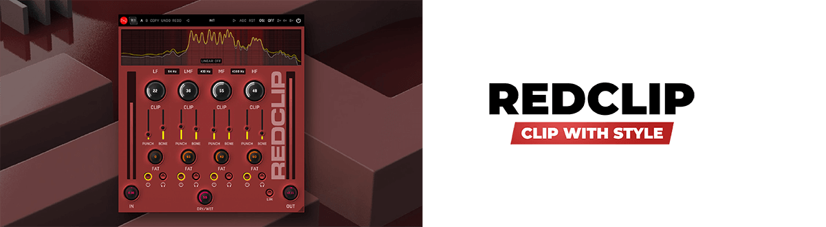 RedClip is an easy-to-use multiband clipper that makes your sound louder, fatter, and more exciting. With simple Fat, Punch, and Bone controls, real-time visuals, A/B comparison, and tons of presets, it's perfect for mastering, adding warmth, or shaping your tone—all in one sleek and powerful plugin.
